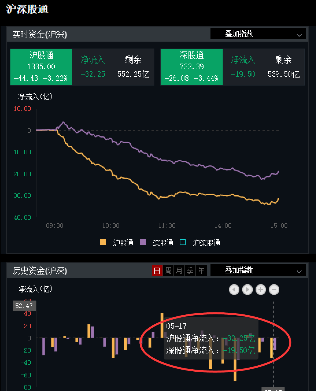 四、北上资金动向:周五港资净流出52亿。
