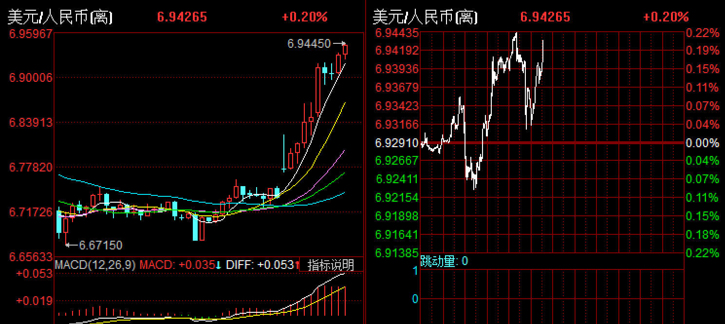 截止收盘,人民币汇率距离7还有空间,且还未出现明显停止贬值的表现,后续仍要保持关注。