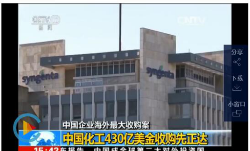先正达通过跟中国化工合作,它实际上可以有利于更好的进入中国市场,甚至进入亚洲的市场。第二个就是因为中国化工在市场与世界上目前跟先正达实际上主要是一个互补关系,竞争关系并不是很强。
