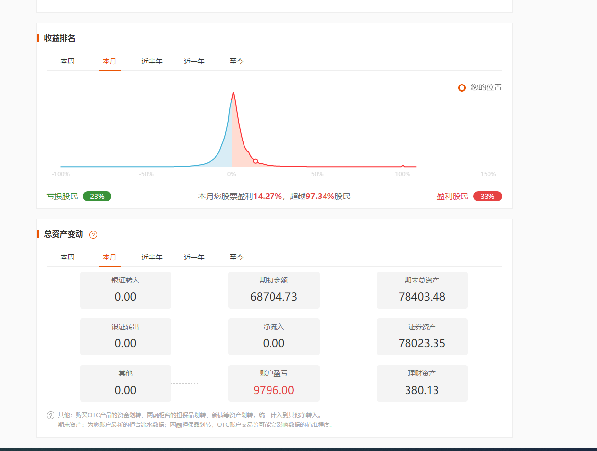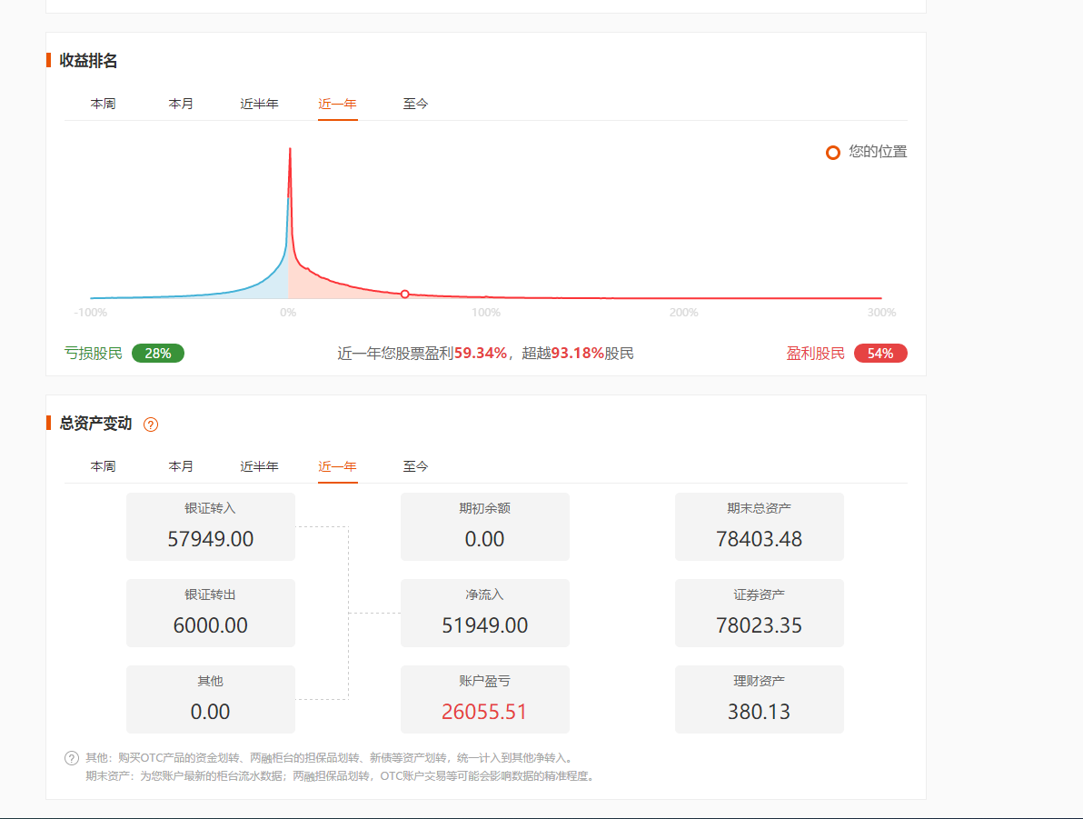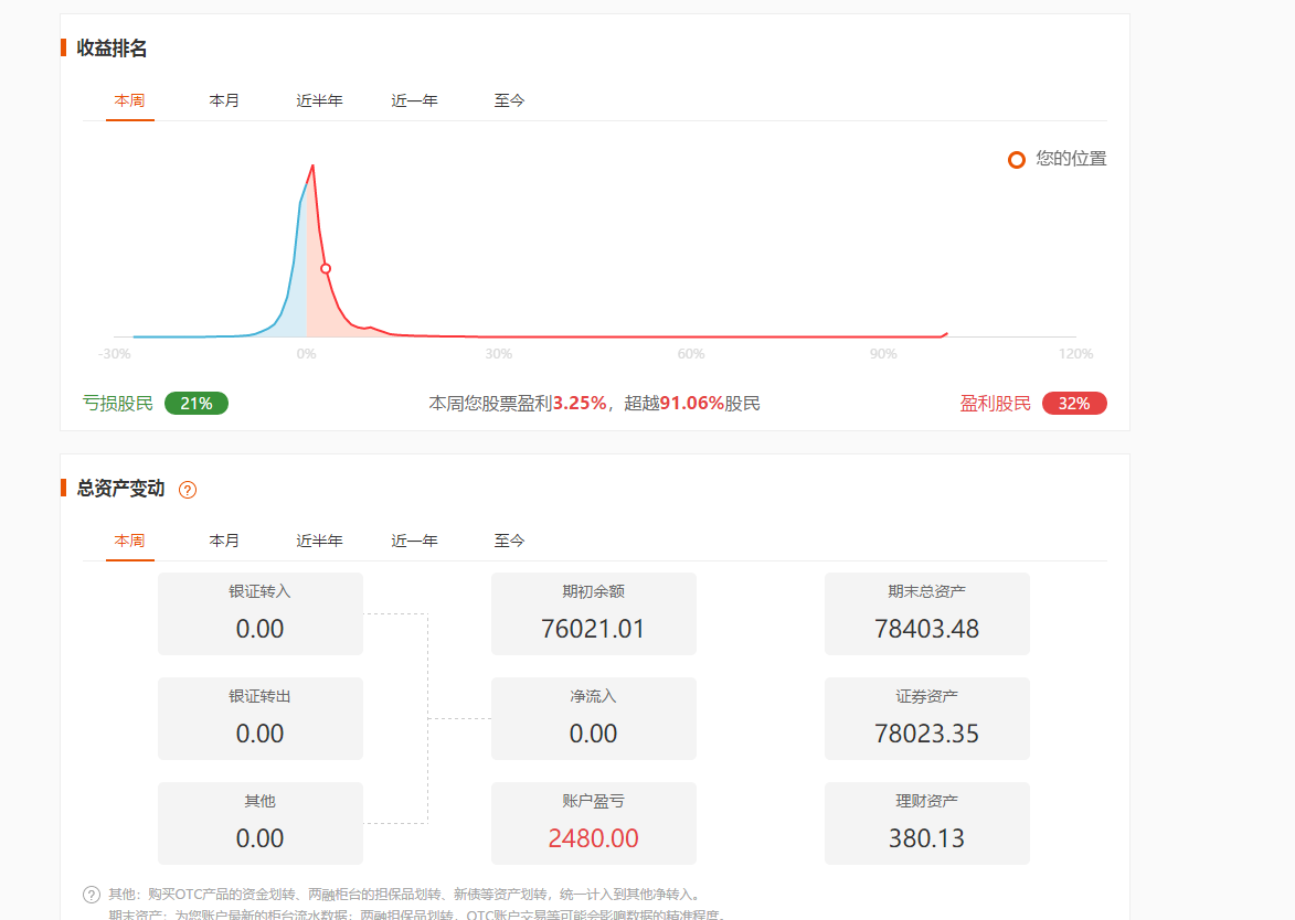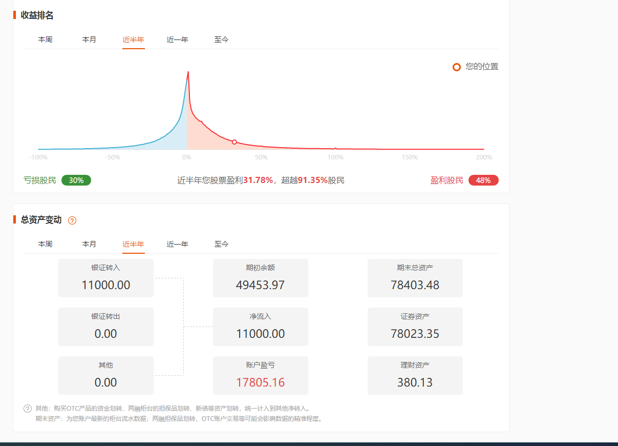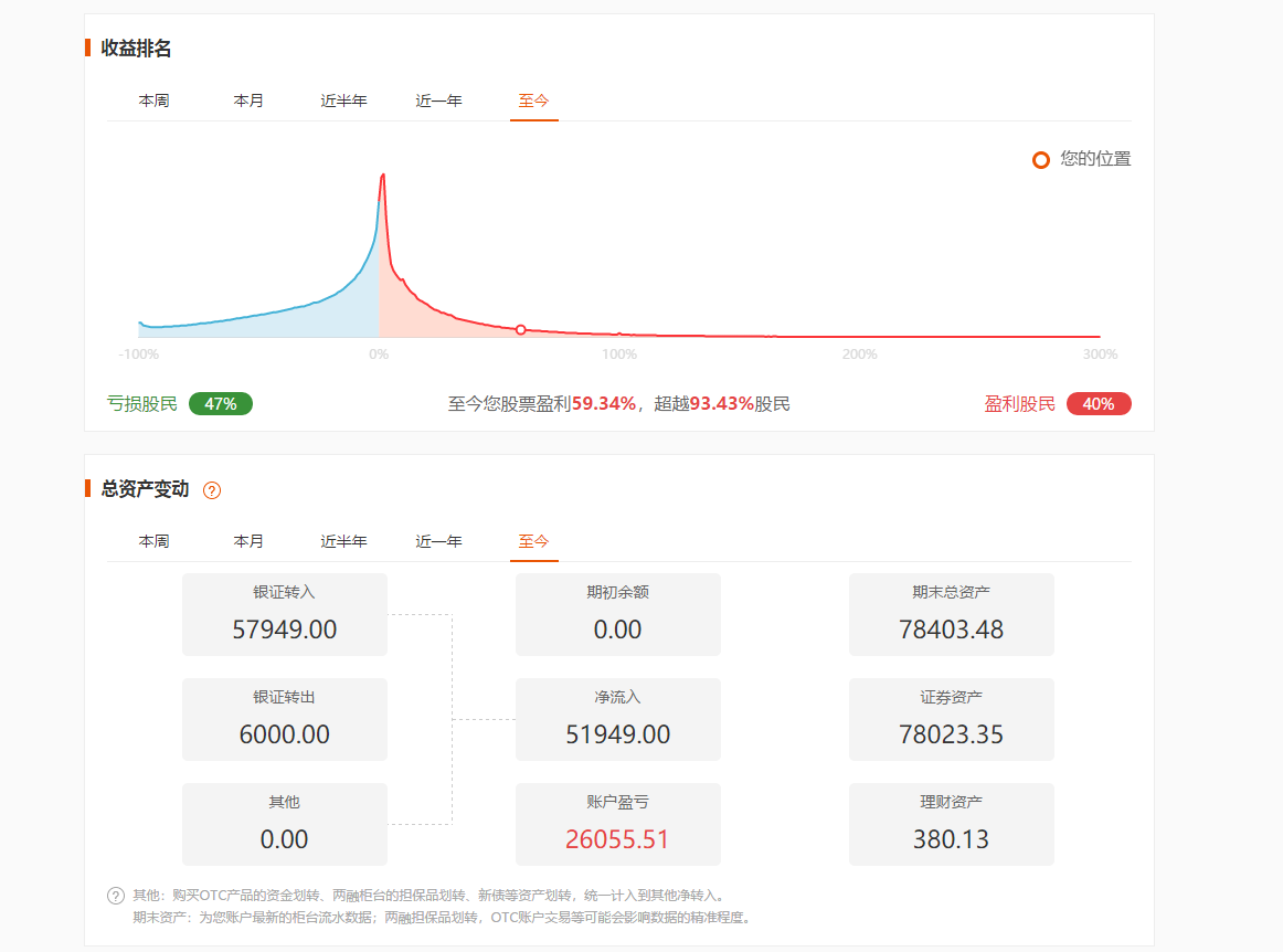 按2019年9月10日进入东方财富证券至今算盈利:78403-47652=30751元