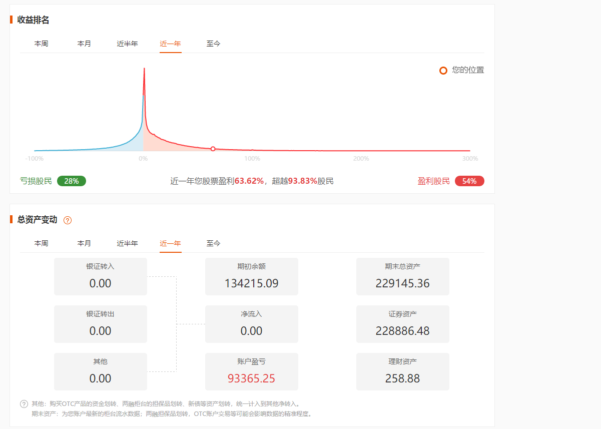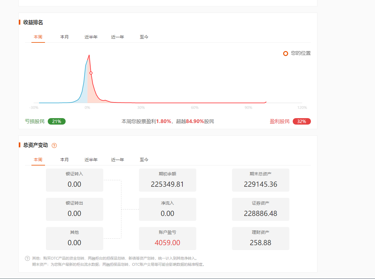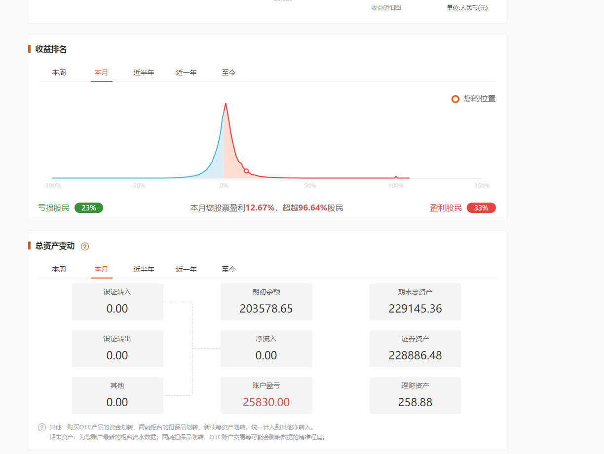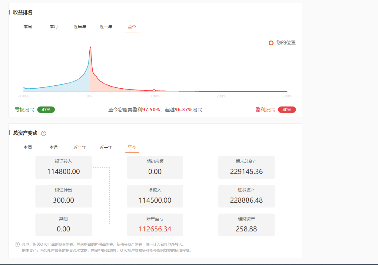 按2018年10月19日进入东方财富证券至今算盈利:229145-111220=117925元