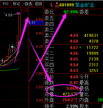 紫金矿业冲击涨停,早盘提示的时候才不到4个点