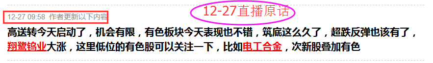 爱心提示:经常按F5刷新键,能及时看到本博的精彩直播消息和推荐的个股。