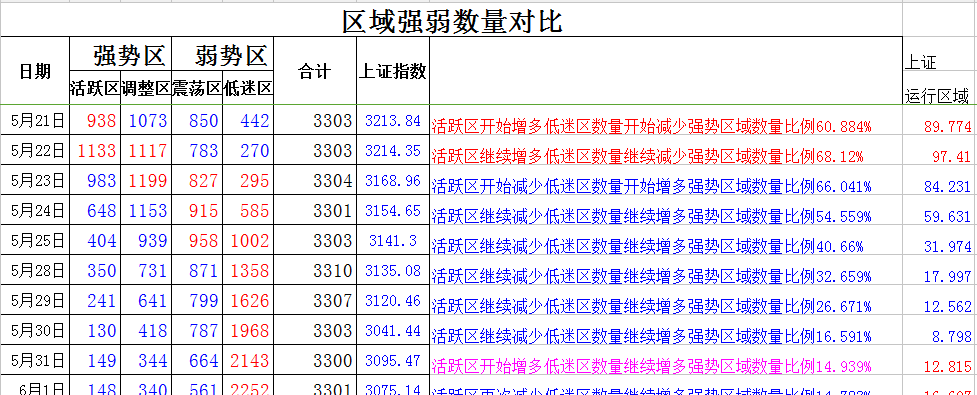 从我的区域强弱数量对比看,活跃区数量继续增多,低迷区数量继续减少,强势区域数量比例继续增大。市场继续以做多为主。经常关注我的博客的朋友可与注意到,股票数量的区域强弱数量比例的变化可以非常精准的反映出市场多空趋势的变化,因为它可以直接反映出市场投资者对市场的趋势的理解和执行的操作趋势,根据的变化,紧跟热点股票就可以做到稳定地获利。昨天市场多空出现了空转多,今天就继续收阳上涨,我们也可以经常看到市场继续做多权重股的打压指数当天收阴线并不能影响市场的做多趋势。