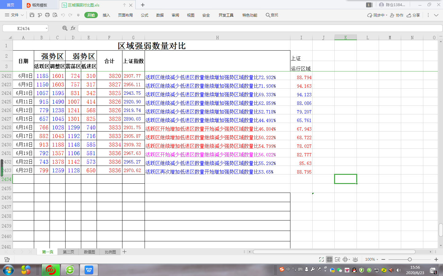 从我的区域强弱数量对比看,活跃区数量在昨日减少后今天再次增加,低迷区数量在连续减少后再开增加,多空再次出现分歧。强势区域数量比例继续下降。从这里我们也可看出多空还没有达成完全的一致,如果明天不上而下再次进入调整可能就会导致市场再次进入做空阶段。。