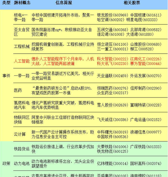 今日利好行业及板块个股: