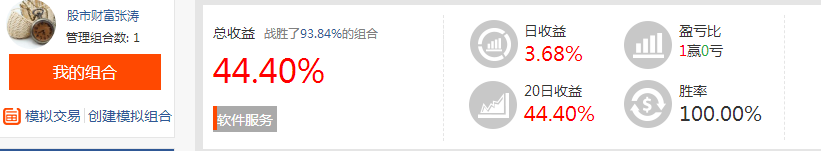中国软件 走得还不错 其他大部分个股被快速打压一波 还蒙圈中 我们实战获利高达44%了 爽歪歪 之前公开过大家的票
