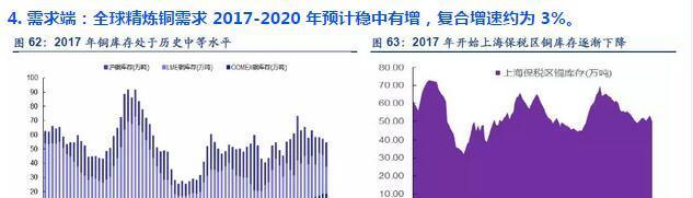 4. 需求端:全球精炼铜需求 2017-2020 年预计稳中有增,复合增速约为 3%。