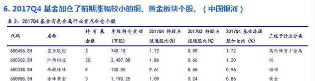 6. 2017Q4 基金加仓了前期涨幅较小的铜、黄金板块个股。(中国银河)
