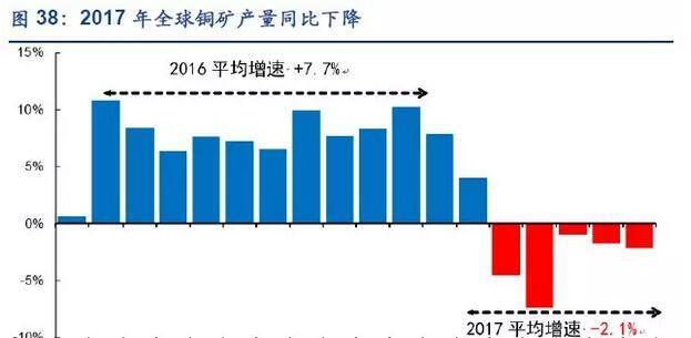 1)我们构建了全球 16 家代表性铜业龙头企业样本库(产量总和接近全球产量 50%),对 2009-2017 年铜产业变迁进行了回顾,发现铜价从2003 年开始上涨,直至 2011 年见顶;样本铜企资本开支在铜价牛市中迅猛扩张,直到 2013 年见顶回落;而铜矿产量则在此趋势下快速增长,直到 2014-2016 年加速投放形成洪峰,然后拐头下行, 2017 年出现铜矿产量负增长。