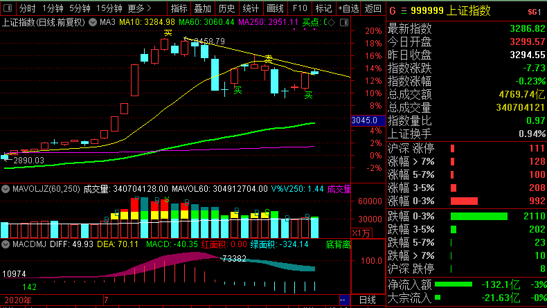 这是近几日地上证指数K线图,引爆点E的图中两次出现“卖”点。还有激情过后的买入点,这都是卖出的提示信号。