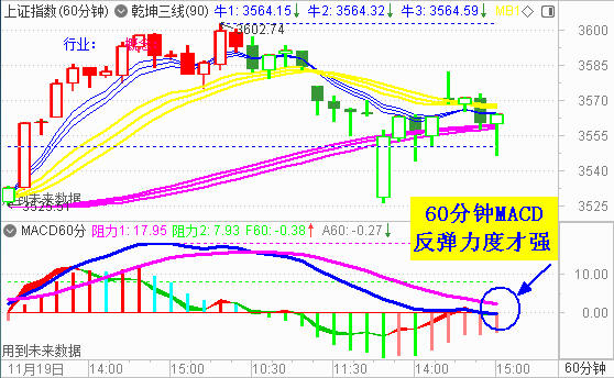 大盘60分钟MACD二线收口,并有金叉的预期。大盘30分钟MACD二线因大盘午后调整而粘合,也是期待空中加油之势。