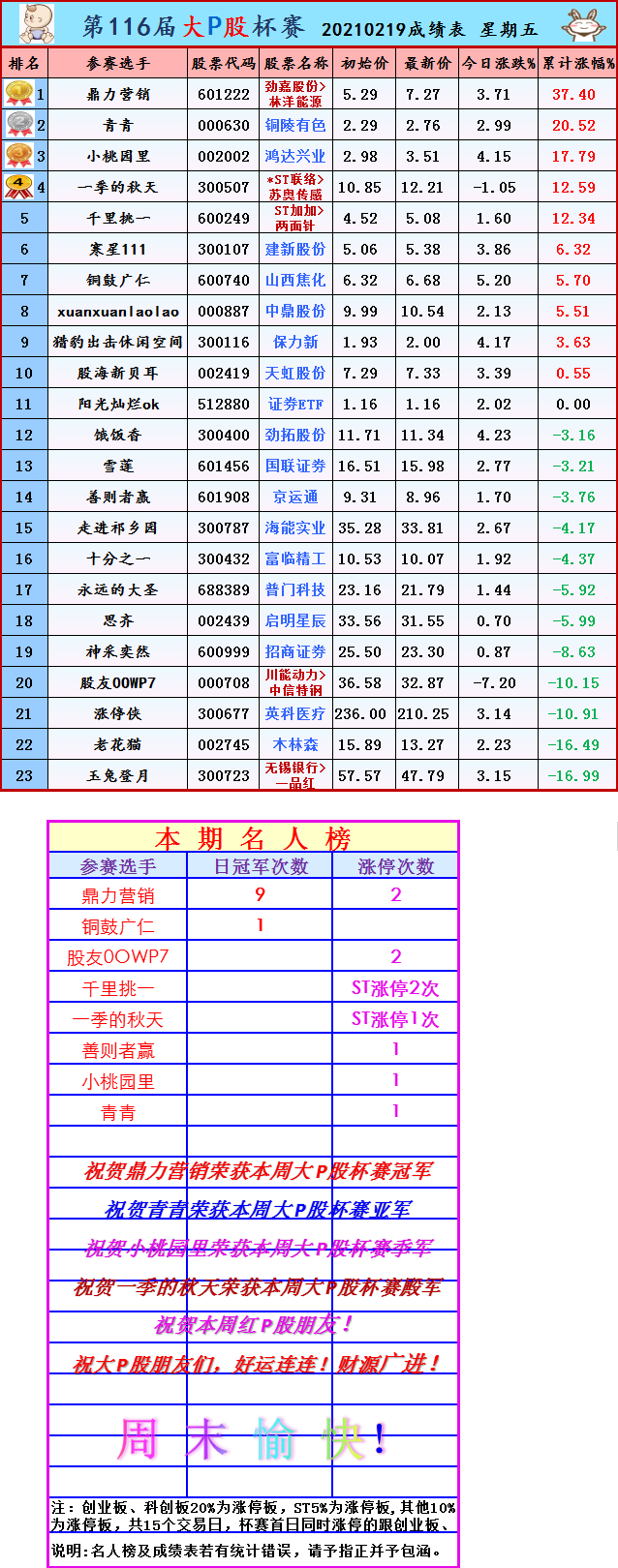 第116届大P股杯赛 20210219成绩表 星期五