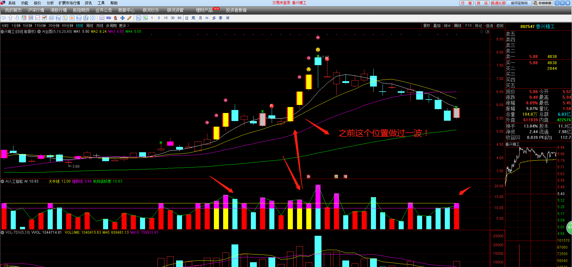 今天买了一只股票, 002547 春兴精工,之前做过的,
