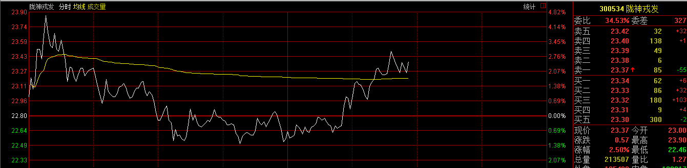 陇神戎发该股跟新宏泽是同一类型的次新+送转机会,该股我在上周五直播就叫大家去跟踪把握了,今日盘前也有推送,早盘冲高回落,午盘再次拉升,还是很有潜力的,跟上的朋友目前小赚,继续跟踪。