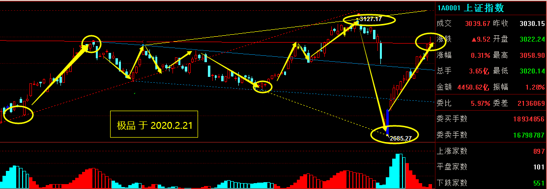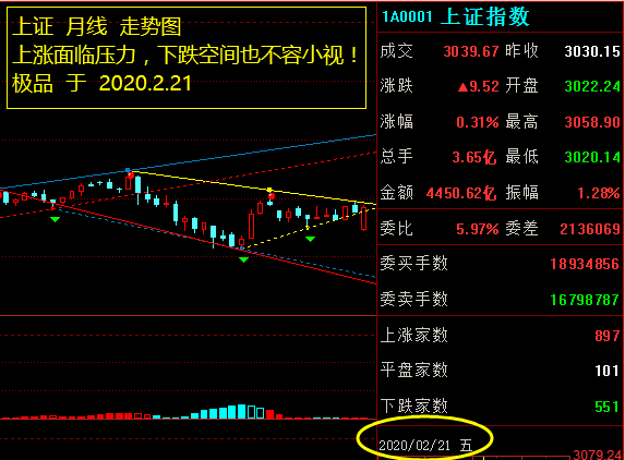 上证2020.2.21日向上变盘,分时阻力在3045点。