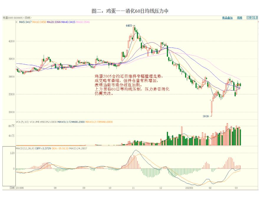 鸡蛋2004合约今日维持窄幅整理走势,成交略有萎缩,但持仓量有所增加,表明当前市场分歧在加剧,上方面临60日等均线压制,压力是否消化仍需关注。