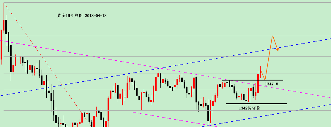 美盘操作小结:黄金,回撤1347-8多,止损1342,目标1353,破位看1357;触及1357空,止损1361,目标5-7美金!