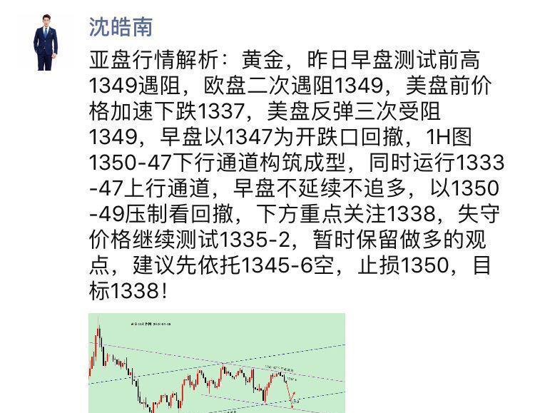 沈皓南:黄金走势像写剧本,美盘回撤多!