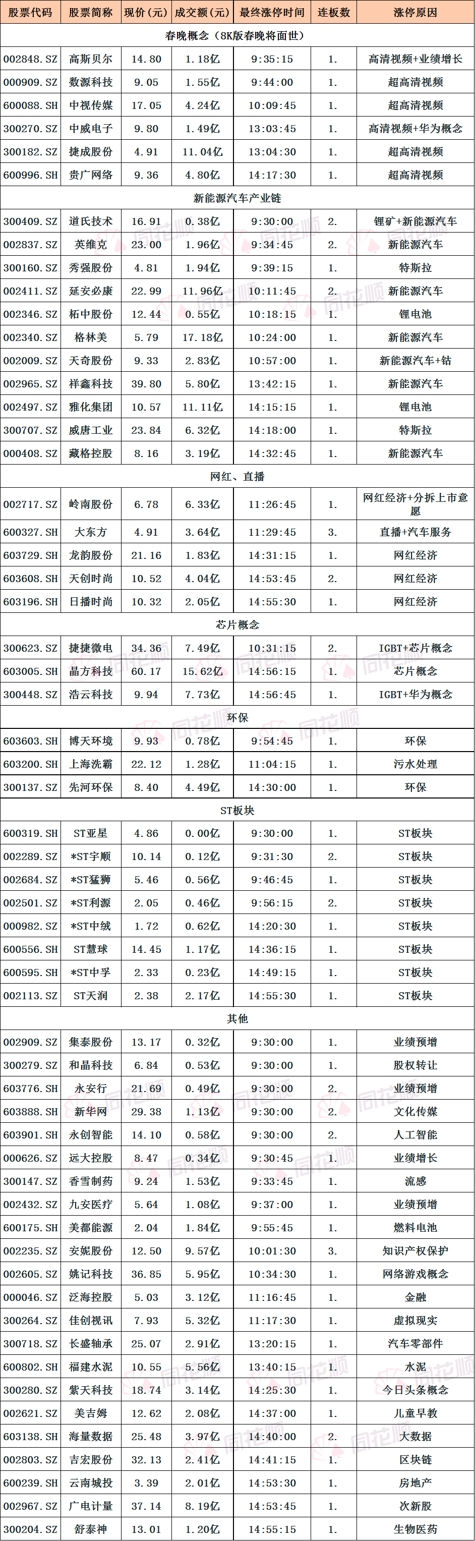 涨停复盘:板块快速轮动 超高清视频概念股引关注