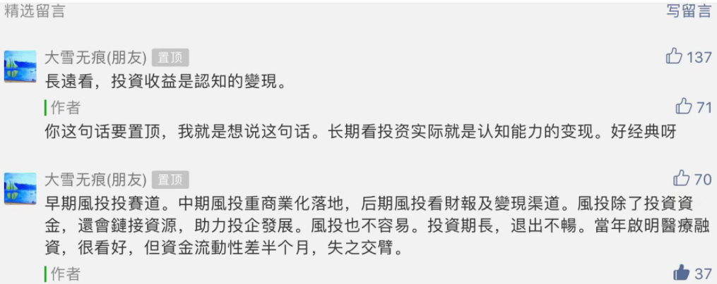 说实话昨天留言的大道无痕我以前没有沟通过,不过它发第一条留言的时候我就立刻将其置顶。因为,感觉这句话就是我想说的:长远看,投资收益是认知的变现。每个人都会失误,失误是非常正常的事情,是从试错到复制赢利模式的必须负担试错的成本,但是一个人的认知能力决定这个人能否在一些列试错后找到正确的模式。