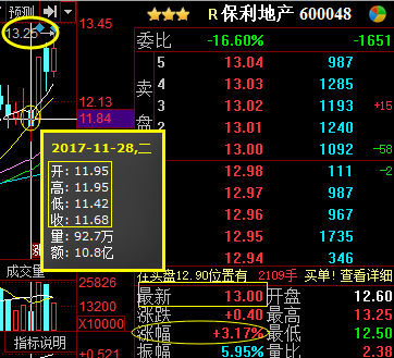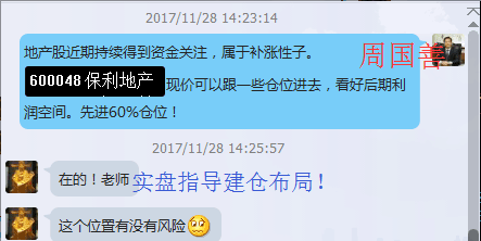 保利地产 上涨不到3个点,昨天就说了,尾盘可以低吸,你要是低吸这三个点就已经到手了,佩服老周的大局观不?该股在11月28号就已经提前通知圈子实战成员建仓布局,来回波段目前利润高达15%!