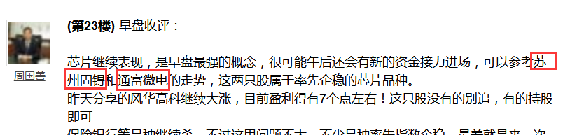 芯片 午后继续发力,而早盘收评分析的苏州固锝和通富微电午后冲击涨停了。