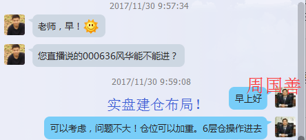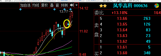 《000636风华高科》 今天开盘继续红盘,昨天进去的今天有足够的机会赚钱出来,所以,方向对了,股灾都不怕的。就比如本直播室前期的璞泰来,股灾逆势表现,在股灾期间,大家都不亏钱,那么就是大赚特赚。
