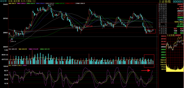 技术上,沪指今日再收小红星,微幅放量,继续维持小量,日线的macd指标绿柱继续放大,还在零轴附近焦灼。kdj指标发散下行,J值有走平迹象。等三线都到20区域易构筑反弹。120分钟收个缩量倒锤头,指标尚未有效金叉,阴阳量继续呈现不良,等转良也是机会时。60分钟的阴阳量继续不良,30分钟同步如此,指标也是中高位拐头下行,有修复需求。整体看还是震荡为主。详细支撑压力我会在实时直播中给大家。最后我说说连续三日的三星,两边红中间绿,似肩挑双阳,是个止跌三星形态,良性形态,算是调整以来的第一次止跌形态,一旦二次再出线,便会确立底部,大家注意观察。
