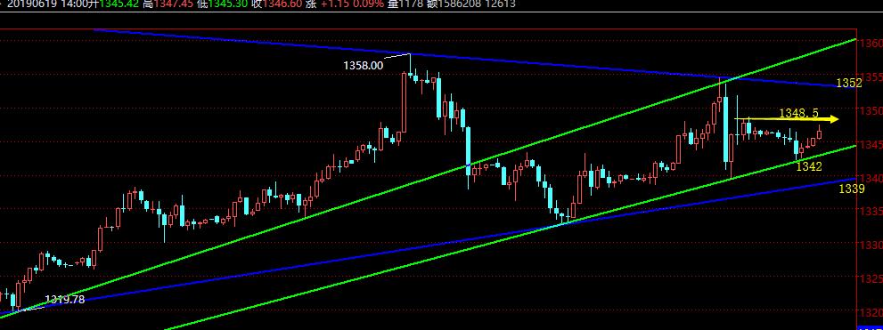 昨日亚盘、欧盘和美盘前后相继上涨了三次,美盘触及的高点1355刚好处于前期趋势支撑破位后转换的压制点,加之美股昨晚大幅上涨以及美元保持的强势,因此提出美盘要干空黄金,先后给出1354空、1348空,最低触及1339,符合了预期的判断;对于今日早间,原本给出1342多,见10点续跌一波后小时线有空头排列迹象,担心白天直接走续跌慢跌模式,因而到了1342做空目标位置后并未反手去干多,不过现在还是往上冲击了1347,算是错过了一波5美元的利润;接下来需要留意1348.5位置,也是隔夜凌晨的压制点,以此作为压力要去干空,下方一旦破位失守1343-42则会走弱延续,笔者认为日线两次冲击1360下都无法拿下,并且都出现大幅的回测,说明压力真的很大,短线应该会保持日线10日上方震荡运行,隔夜回落,今日亚盘没力度上涨,则会先延续下跌一波,做多首先关注日线10日位置1337,其次是1333-32前提的起涨点;