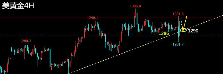 1286和1300不论是从近期上来说还是从历史上都是很关键的支撑与压力,所以建议下周初不要追多或者追空。布局上还是建议参考趋势线1290位置做多,止损1286,目标1300