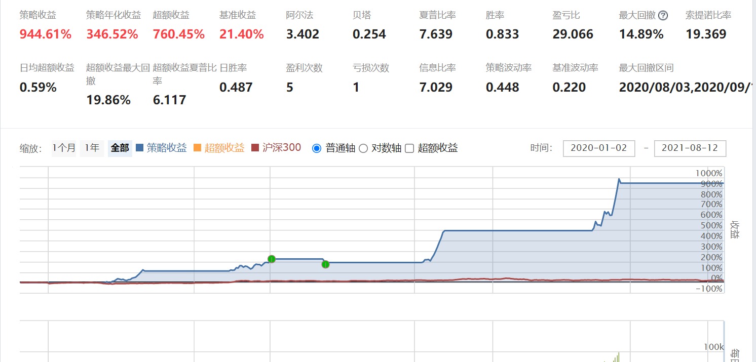 形态选股策略,该策略的历史回测记录显示,年收益超100%,一年交易次数不超10次,每次都大概率抓住强势上涨股,失误极低,入场价回调5%止损离场,风险可控,盈利单次获利至少40%以上出局。