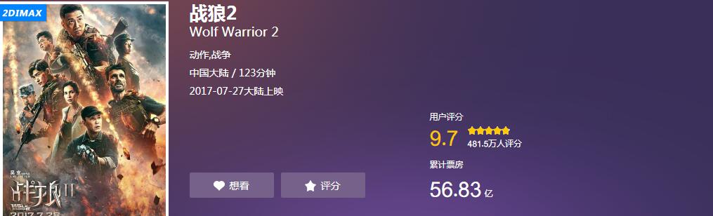 衷心祝愿吴京《战狼3》能够功成名就,同时也祝愿如《战狼2》、《红海行动》、《战神诀》、《冲出亚马逊》这样的经典作品,为市场做出的贡献!向奋战在一线,心怀梦想的主创团队深表致敬!