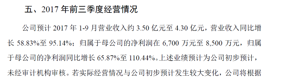 东尼电子很早对三季度业务进行了预告