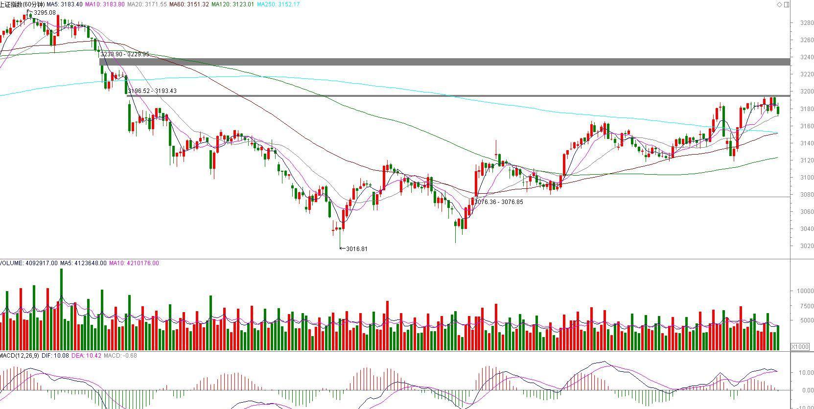 从技术指标看,沪指60分钟级别MACD指标,DIF和DEA线在0轴上方形成死叉,尾盘绿柱开始出现,显示继续震荡调整概率较大。不过向下调整的空间应该也比较有限,短期支撑位在10日均线附近。