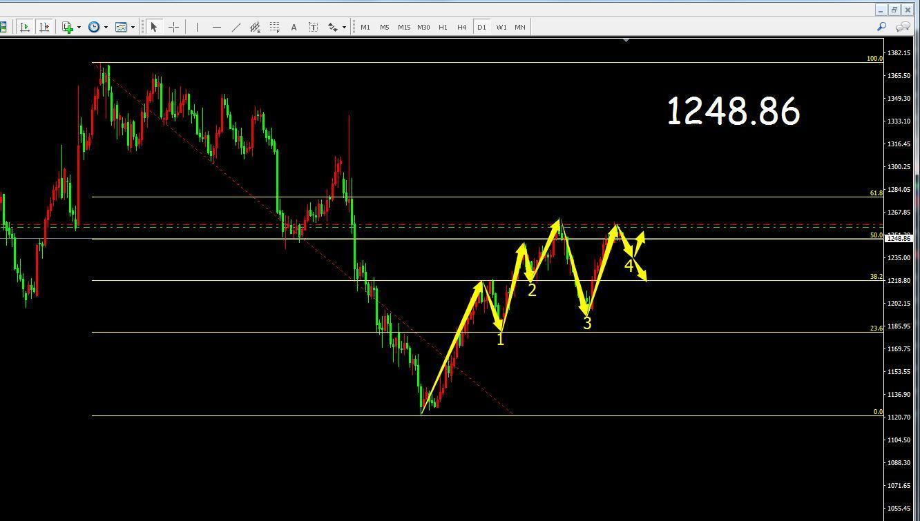 结合上图斐波那契回调线我们也能比较清晰看出在行情上升的过程中,都是回踩回调线进行拉升,在第二波上升后,行情出现了一波大幅度的回撤,打破了原本的上升思路,在深度回调之后行情,行情依然受市场的加息消息强势走高,但未能破前期1262的压力,形成双顶,所以本次回调也有着比较重要的技术回调,下破1241一线,那么本次的回调意味着结束,不破行情仍需要一段时间的震荡积蓄能力上攻。