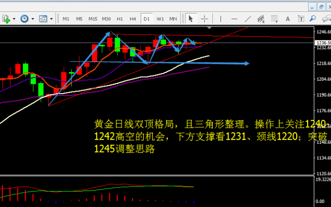黄金 1240-1242高空,止损1245上,目标看1235-1232,破位关注1220;多单关注1220,破位1245调整操作思路。