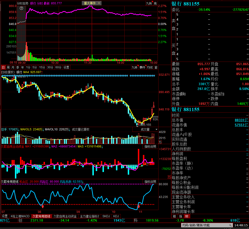 看看主动资金延续买进的银行股,已经是反弹到顶,下跌回调一触即发,