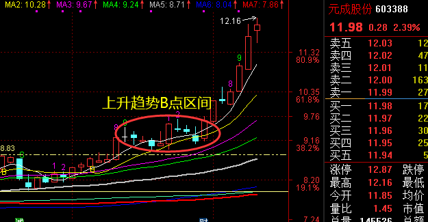 技术案例图形学习(近期圈内TS过为主):603388元成股份,装饰园林概念,技术上走上升看涨形态,择机入场等主升获利。