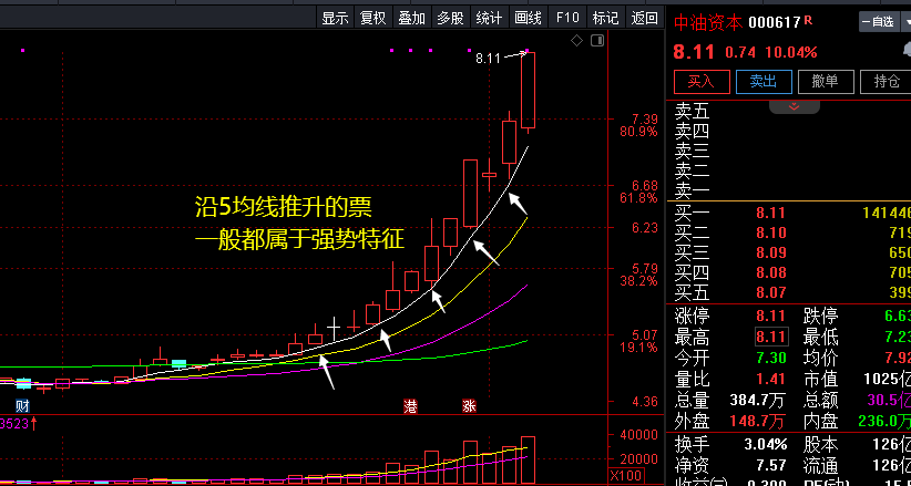 技术案例图形学习(近期圈内TS过为主):000617中油资本,中字头/央国企改革+跨境支付概念,技术上就一个特点,沿5均线推升强势趋势形态,结合资金风口,适当入场博强势就吃肉了。