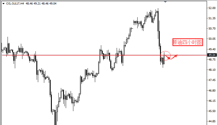 在OPEC会议,各国油长比较看好延长减产期限9个月,并且不会扩大减产规模。原油则在消息公布后出现明显的买预期卖事实走势,原油从最高触及52美元关口跌至48.6美元,将近4美元的下跌力度,这种走法也是强势多头中出现回调修正的一种手法。会议结果与市场预期一致,会议延长9个月,但是并没有扩大减产规模,在市场利好出尽的情况下,油价单边暴跌3%,在消息面的刺激下,技术面没有太大的参考价值,大家顺势操作即可