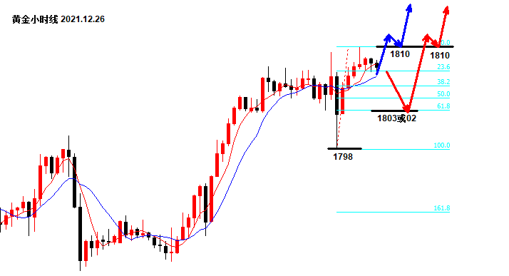 至于短线方面,也给大家绘制了一张走势图,从图中我们可以看到,黄金要么突破1810以后直接追多,要么回调1803或02做多看1810突破。