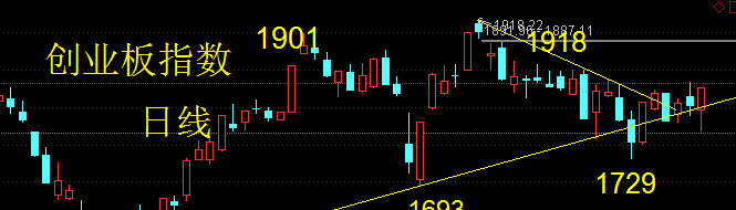 创业板指数周线已经突破上一周最高1825.23点,周线出现向上拐点并且突破下降通道。