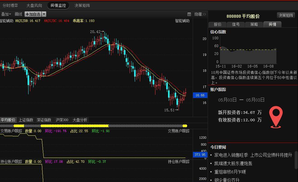 平均股价上看,平均股价重新站上智能辅助线,场内场外资金连续两天同时流入,中期趋势反转,可继续以3成仓位进行操作。沪指双底结构形成,并沿着上涨通道反弹,中期反弹趋势确立,但量能的萎缩很大概率导致明日的调整,有获利的个股可做高抛低吸的操作。创业板指在大阳线高位处洗盘震荡,背靠着30日线的支撑。