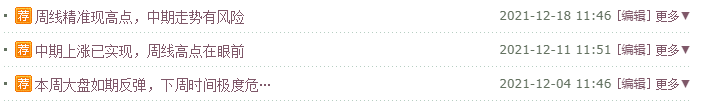大盘跌到这里,很多人快要扛不住了,但是看看去年十二月我是如何提示风险的,这是去年12月4日,11日,18日连续三周的博文题目,最后高点出现在13日,也就是说我在高点出现的前一周提出预测,当周左侧确认,下一周右侧确认了3708点为大高点。可以说能做到这一点的,没有第二人。