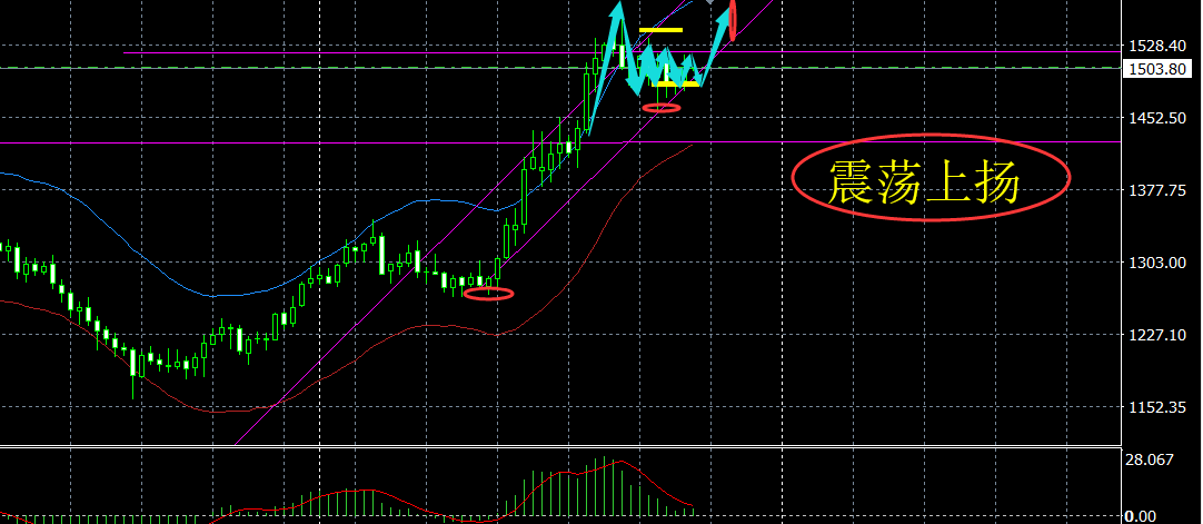 技术面:黄金日线很明显上方收线长上影阳线定针承压形态,预计今日金价还是继续走盘整先修复路线,日线4连阳后,最后一根阳线是冲高回落,震荡还是继续,多头没一口气突破上方强压,1510仍是关键,亚盘回踩继续低多测试,轻仓,行情不大需更多耐心等待破位机会,低多狙击。最好午盘后下手。