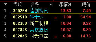 创业板指数领先,上证指数垫底。