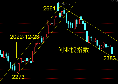 创业板指数启动点是2273点,上升到最高2661点,上升了388点,调整0.618位置是2421点,昨天最低2383点,应该说这个位置已经不能再下跌。