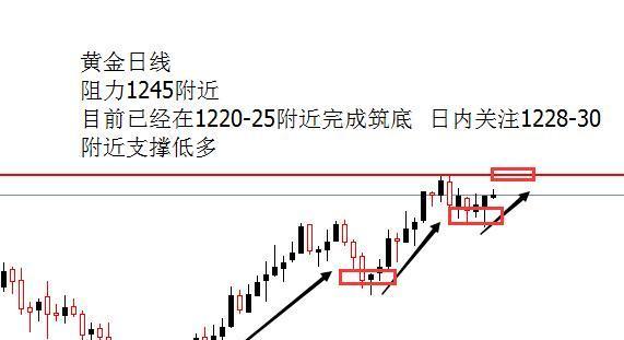 黄金策略:日内重点关注1228-30附近支撑节点低多思路止损在1223下即可。依然看好测试到1240-45附近的压力位置.什么时候突破站上1245那么还有高点会出现。