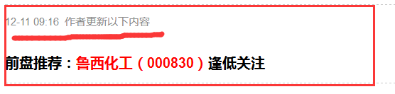 从12月11号开始推荐鲁西化工目前上涨35%这就是股市就是这样耐心就是成功的基础如果用心肯定有好股的!实力的鉴证!